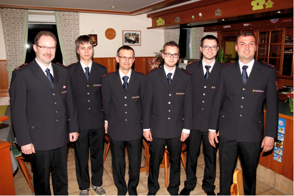Abteilungskommandant Alfred Hoferer, Thomas Mischke, Ernst Huber, Johannes Braun, Manuel Braun, stellv. Abteilungskommandant Andreas Schweiger.